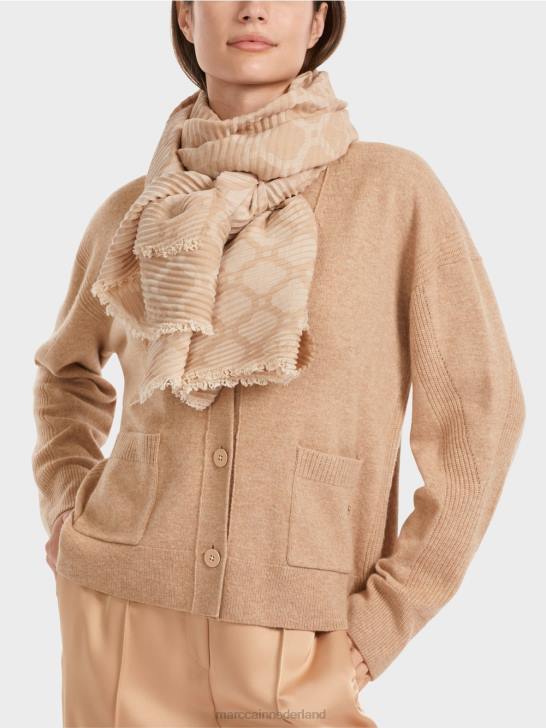 sjaal gemaakt van een zacht vallende materiaalmix met viscose. deze sjaal presenteert zich ongebruikelijk met plooien. het subtiele patroon geeft het een bijzondere flair. de fijne franjes maken het ontwerp compleet.