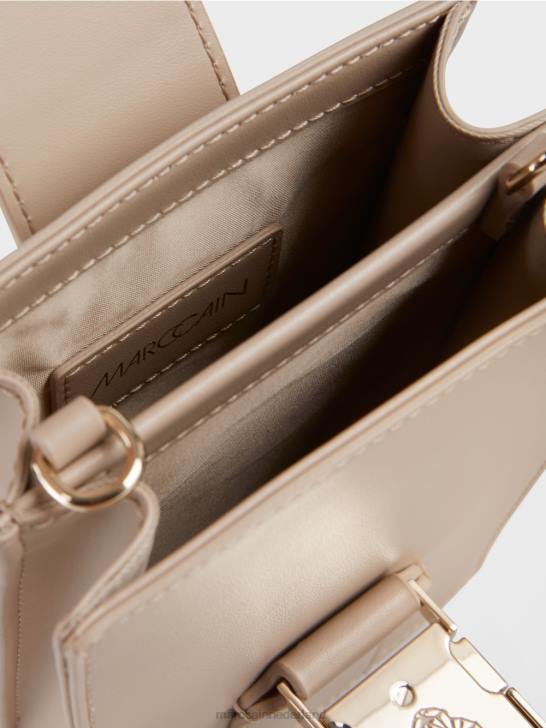 kenmerkend voor het ontwerp van deze tas is het smalle lengteformaat. doordat de basis relatief breed is, is er nog steeds voldoende ruimte. Ook zijn er twee compartimenten zodat de inhoud goed georganiseerd kan worden. De tas kan aan de voorkant worden vastgemaakt met een metalen kliksluiting. de schouderband is gemaakt van een stevige textielband bedrukt met een gestileerd luipaardhuidmotief.