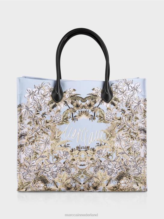 deze draagtas ziet er vrouwelijk uit dankzij het bloemmotief. het mc-logo is geschreven in een sierlijk cursief schrift. Er is een bijpassende hartapplicatie op de voorkant. twee handvatten in leerlook zorgen voor een elegante touch. Er is een binnenzak met ritssluiting om uw waardevolle spullen in op te bergen.