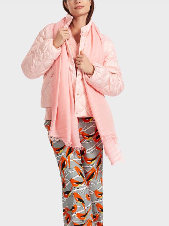 deze effen sjaal overtuigt door zijn zachte viscosemix. de glanzende lurexdetails zijn een eyecatcher. Fraai zijn ook de geplooide plooien, die de sjaal een aangename breedte geven. de kleine franjes rondom benadrukken de speelse look.