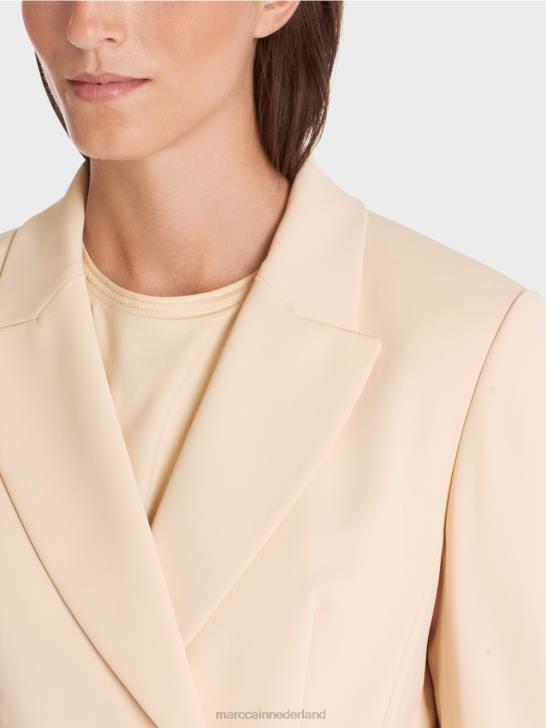 gemaakt van zacht materiaal met stretch, deze blazer is zeer comfortabel om te dragen. de prinsessennaden zorgen voor een nauwsluitende look. de lange snit benadrukt de klassieke look van het jasje met dubbele rij knopen. toepasselijk heeft het jasje opgestikte zakken en een opstaande revers. knopen aan de mouwzoom maken de stijl compleet.