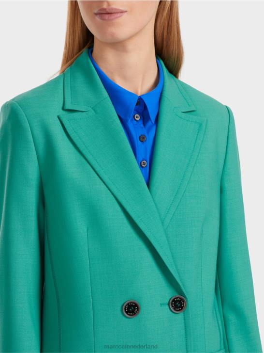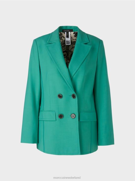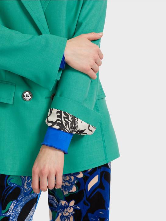de double-breasted blazer is gemaakt van een robuuste vezelmix op wolbasis. de vorm sluit nauw aan op het lichaam - er zijn taillenaden aan zowel de voor- als achterkant. voor gemakkelijker aan- en uitkleden is de blazer half gevoerd, dat wil zeggen aan de achterkant en de mouwen. de voering is voorzien van een patroon.