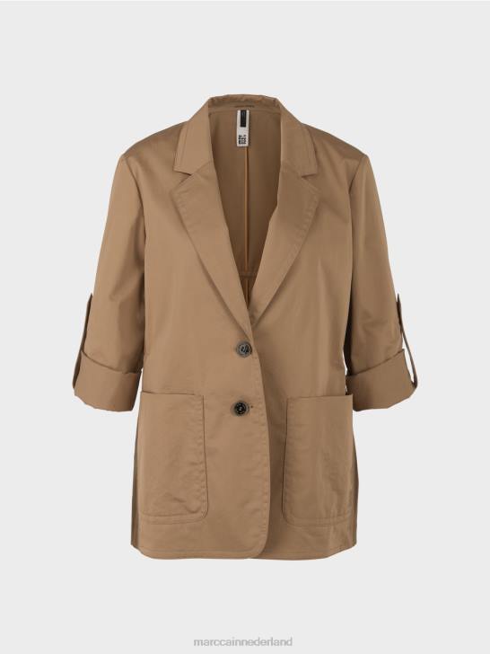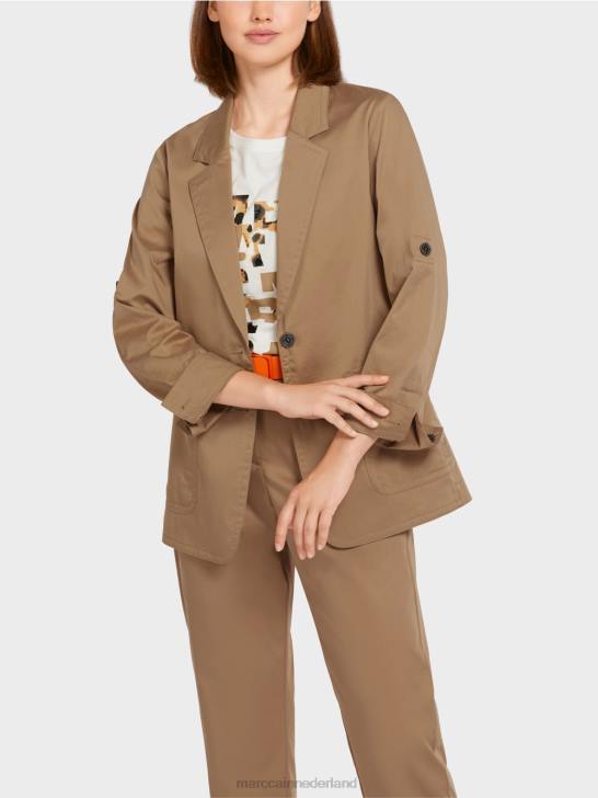 single-breasted blazer in een sportieve snit met een mouwlipje en trekkoord in de taille. deze blazer van comfortabel stretchkatoen heeft op het eerste gezicht een klassieke uitstraling. Het heeft notch-revers en opgestikte zakken. Speciale accenten zijn de mouwlipjes, waarmee de mouwen nonchalant kunnen worden opgerold, en het trekkoord in de taille, wat het casual ontwerp versterkt.