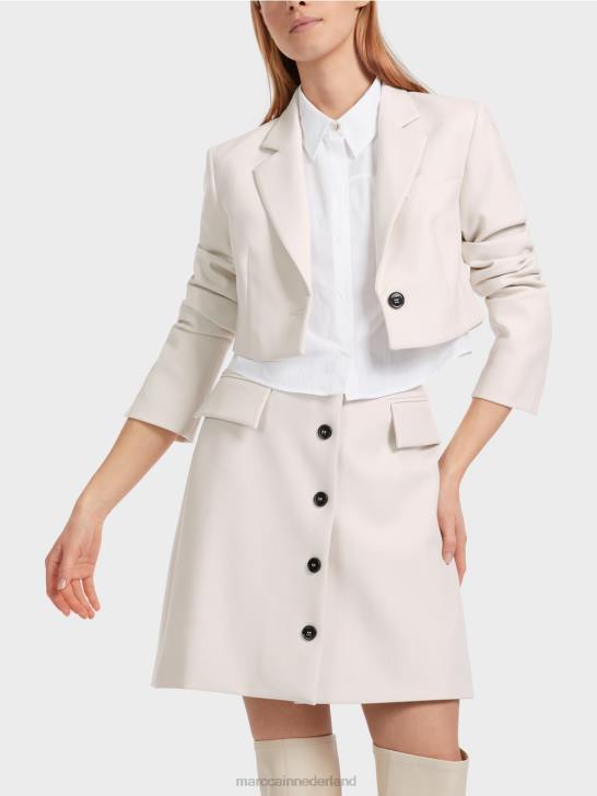 blazer in een materiaalmix met katoen en elastaan. met zijn korte snit scoort deze blazer als actuele aanvulling op broeken en rokken. het heeft een typische revers en een borstzak aan de linkerkant. het jasje sluit met een contrasterende gekleurde knoop. prinsessennaden en figuurnaden creëren een nauwsluitend silhouet. de mouwzomen zijn gesplitst voor meer comfort.