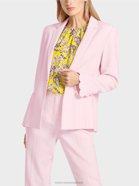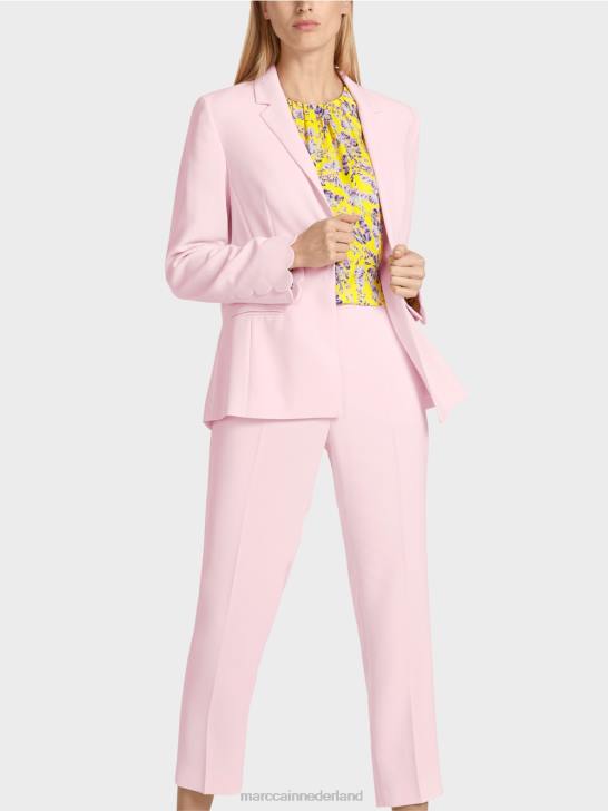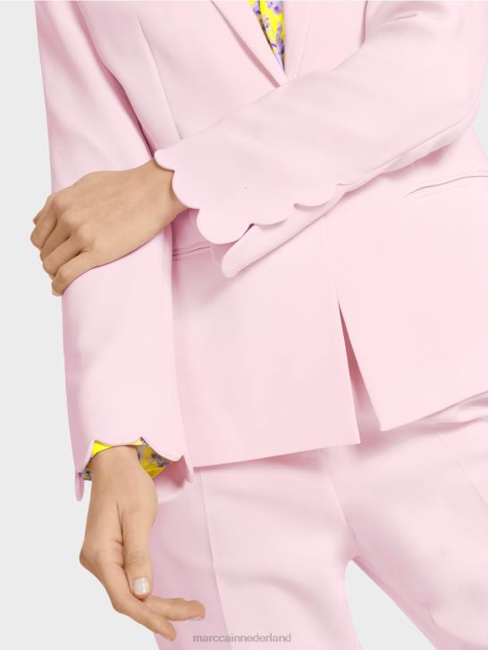 de nauwsluitende vorm van deze blazer wordt bereikt door de prinsessennaad. het lichtgewicht en vloeiende materiaal geeft het een zacht silhouet. Er zijn subtiele paspelzakjes en een smalle revers aan de voorkant. de geschulpte mouwzoom zorgt voor een decoratief detail. de blazer heeft ook een ventilatieopening aan de achterkant.