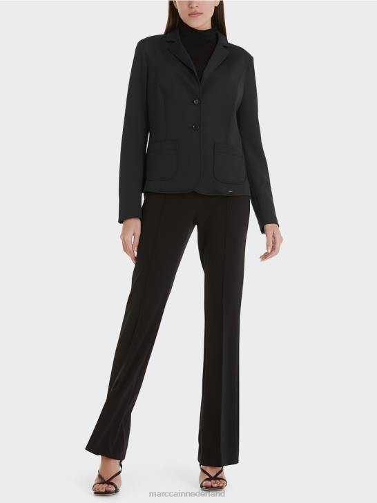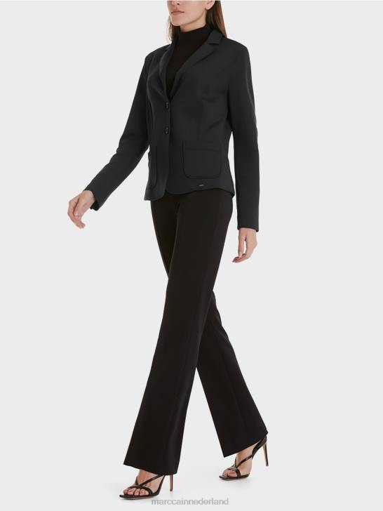 de subtiel getailleerde blazer is gemaakt van superzachte stretchjersey en biedt daardoor het beste draagcomfort. de afgeronde zoom, splitten aan de mouwuiteinden en opgestikte zakken zijn bijzondere stijlelementen. de blazer wordt gesloten met twee knopen.