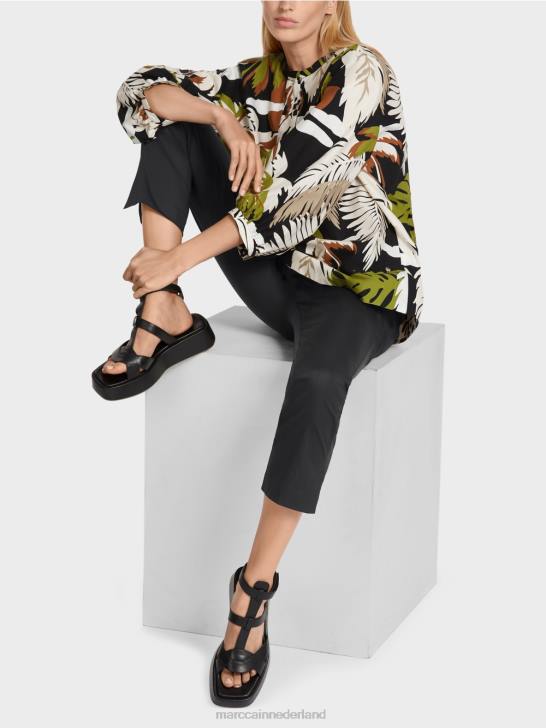 kleding diep olijfgroen 464J944 katoenen a-lijn blouse Marc Cain