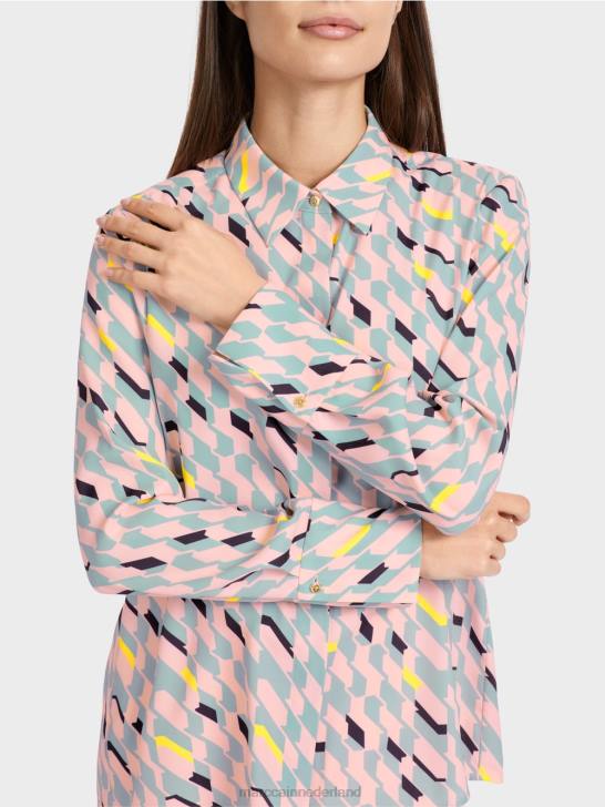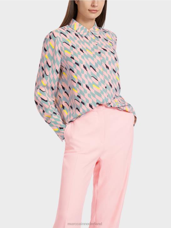 kleding donker hemelsblauw 464J888 blouse met grafisch dessin Marc Cain