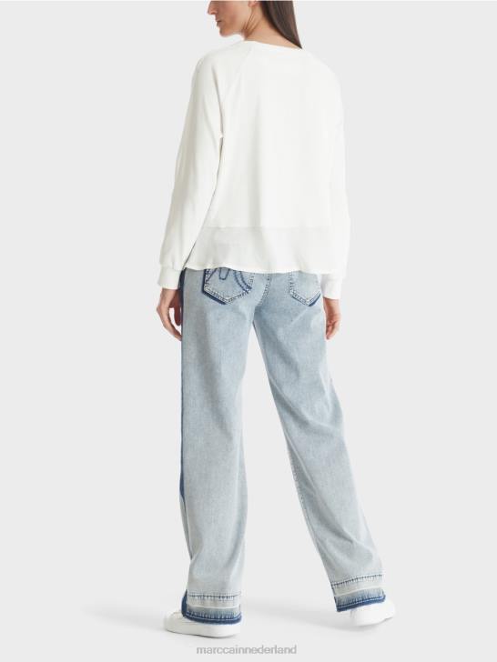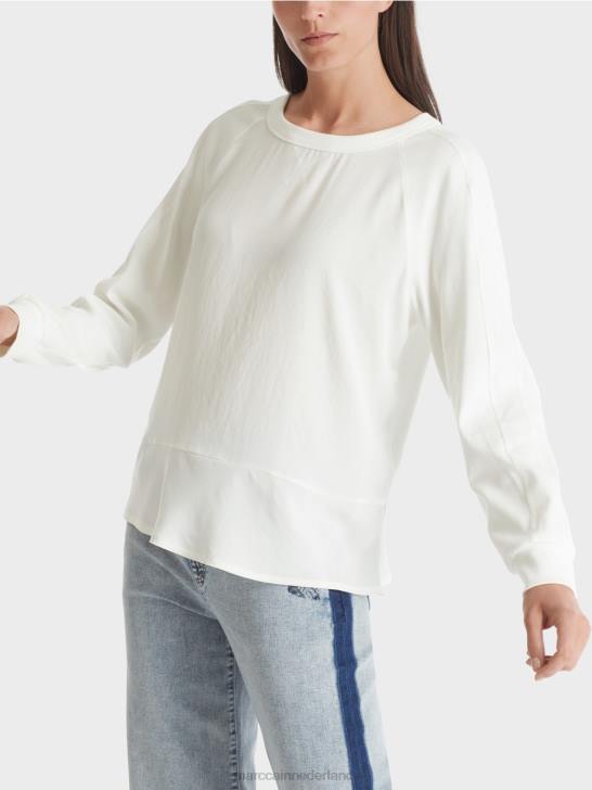 kleding gebroken wit 464J872 raglanblouse met materiaalmix Marc Cain