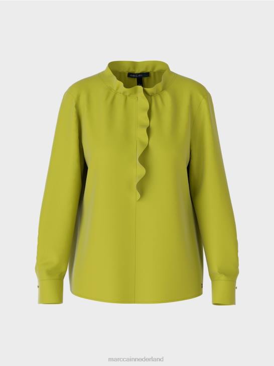 de blouse is gemaakt van soepel materiaal en heeft een flatterend silhouet. Hoogtepunten zijn onder meer de volant aan de voorkant. brede manchetten met één knoop maken de look compleet. aan de zoom is een kleine logohanger geplaatst.