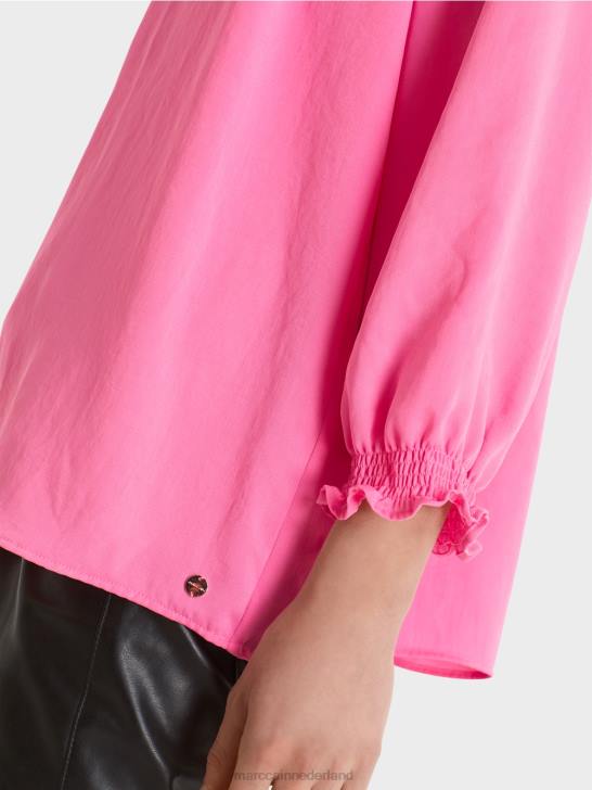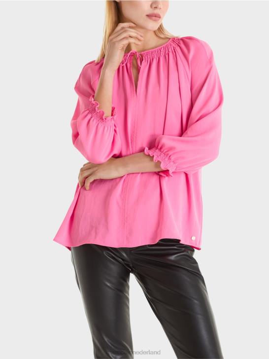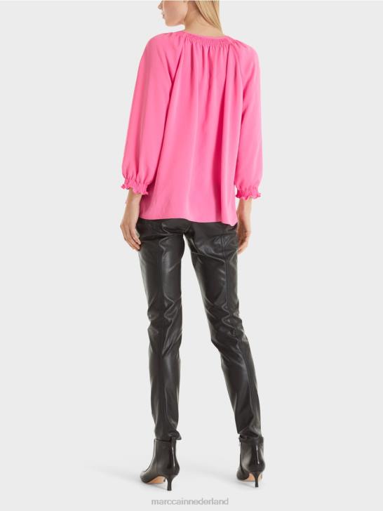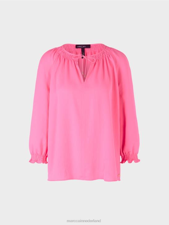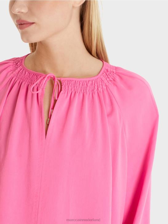 deze vrouwelijke blouse draagt het duurzaamheidslabel "rethink Together" en is gemaakt van gerecycled polyester. gesmokte details bij de halslijn en manchetten accentueren de look. naden in handsteekoptiek zorgen voor bijzondere accenten.