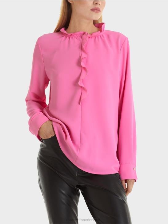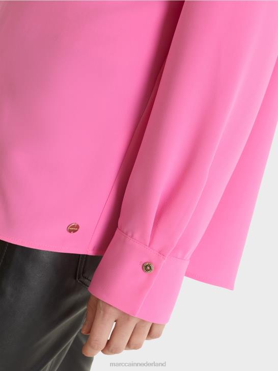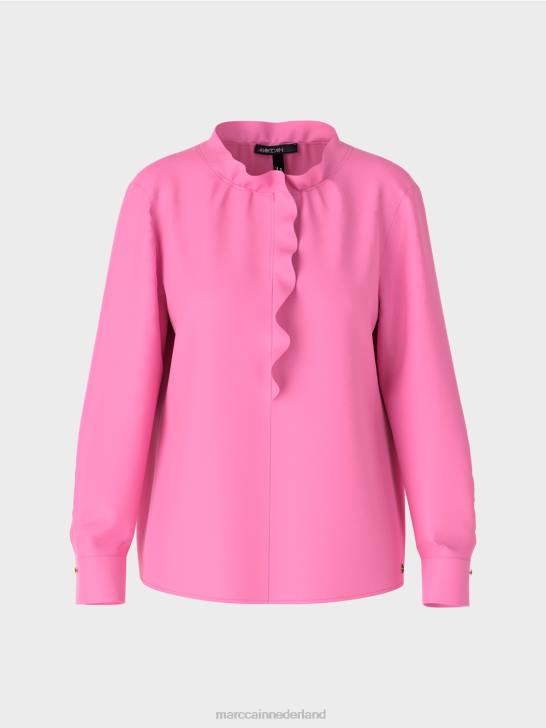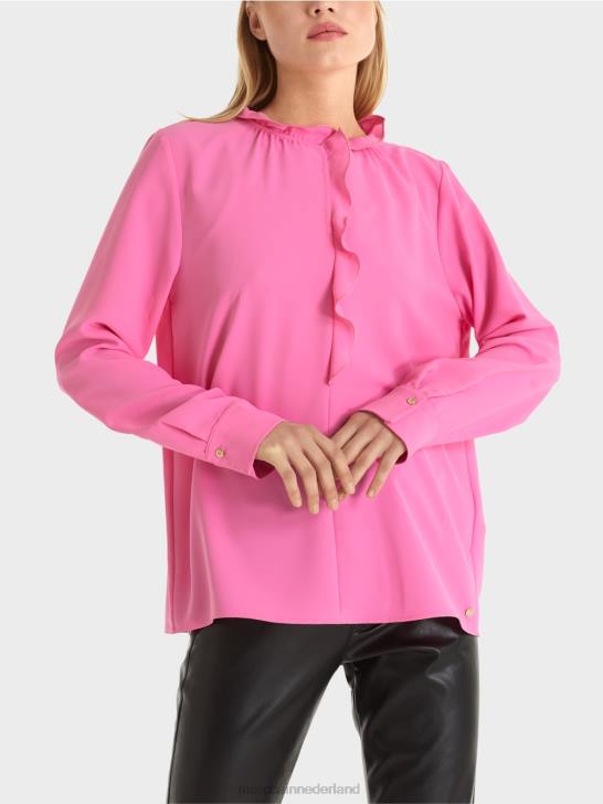 de blouse is gemaakt van soepel materiaal en heeft een flatterend silhouet. Hoogtepunten zijn onder meer de volant aan de voorkant. brede manchetten met één knoop maken de look compleet. aan de zoom is een kleine logohanger geplaatst.