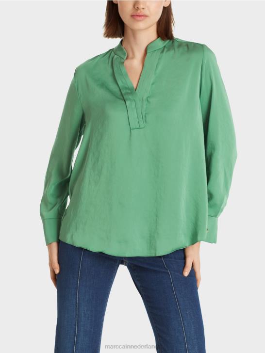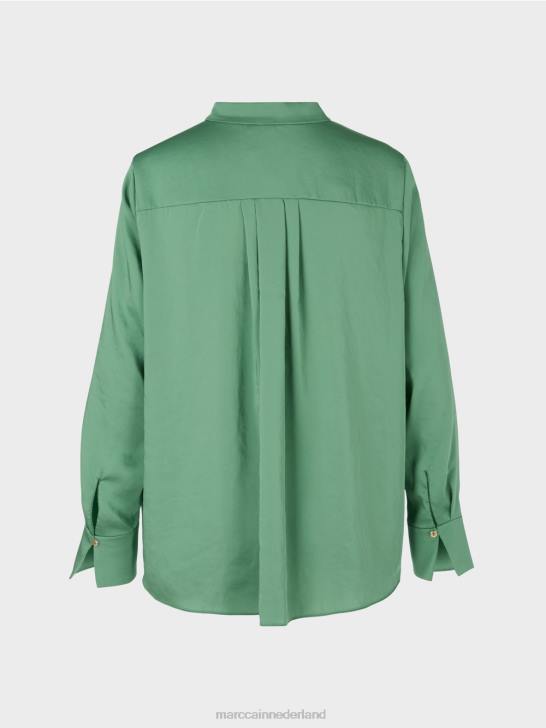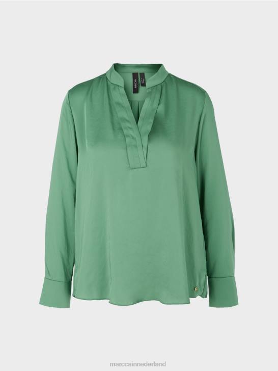 deze effen gekleurde top in blousestijl heeft een relaxte pasvorm met plooien aan de achterkant voor gemak van beweging. de gekruiste halslijn is afgewerkt met parallelle gewatteerde naden en gaat over in een kleine opstaande kraag. de blouse is ontworpen met kenmerkende mouwen met manchetten. de afgeronde zoom wordt aan de achterkant langer en is voorzien van een metalen mc-logo aan de voorkant.