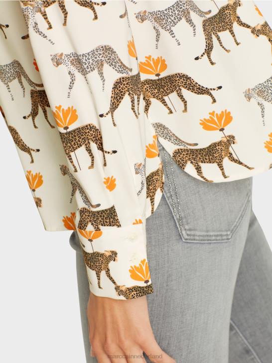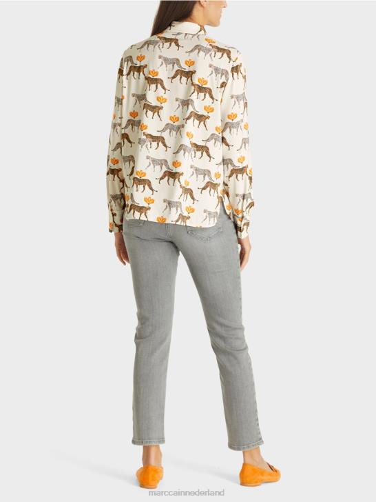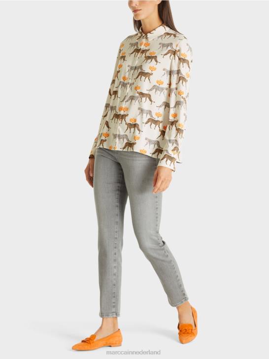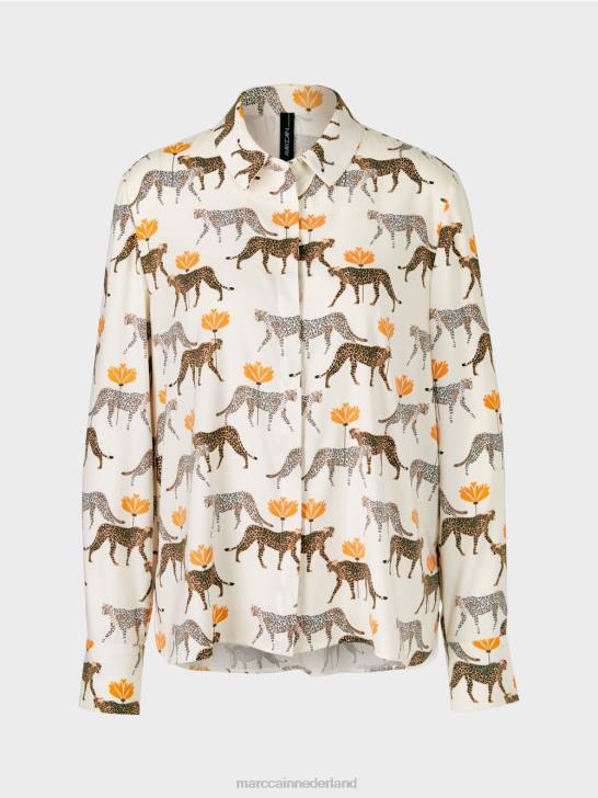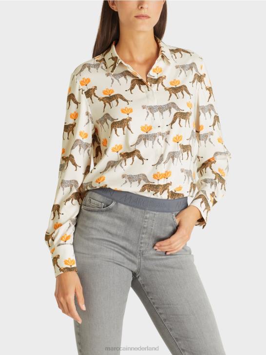 de blouse is bedrukt met kleine luipaarden in verschillende tinten. door het lichtgewicht materiaal met elastaangehalte biedt de blouse een aangenaam draagcomfort. de zoom is afgerond en de knoopsluiting is verborgen. elegante manchetten met twee knopen maken de look compleet.