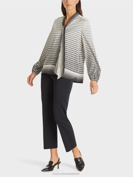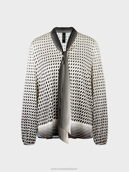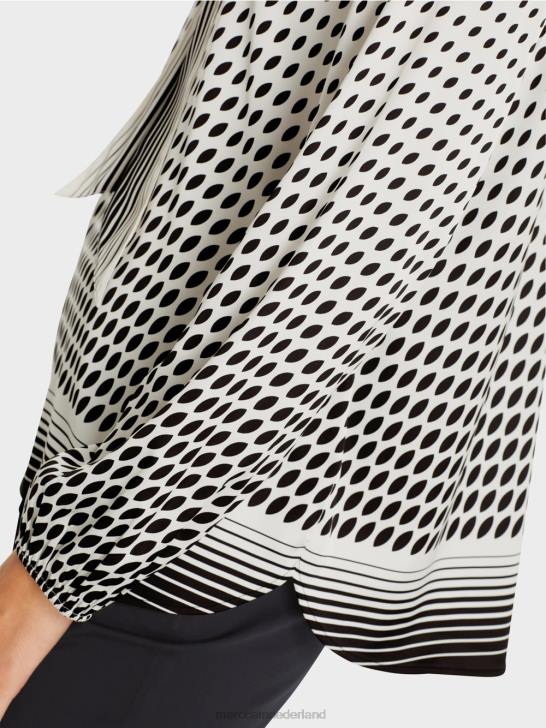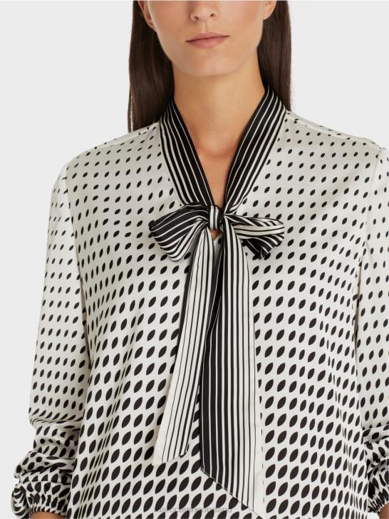elegante strikblouse met een mix van strepen en stippen. het lusje kun je los dragen of vastknopen in een mooie strik voor een bijzonder vrouwelijk en speels effect. het vloeiende materiaal met elastaanaandeel onderstreept het draagcomfort.