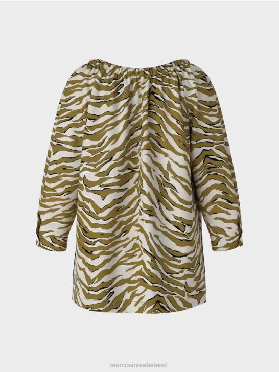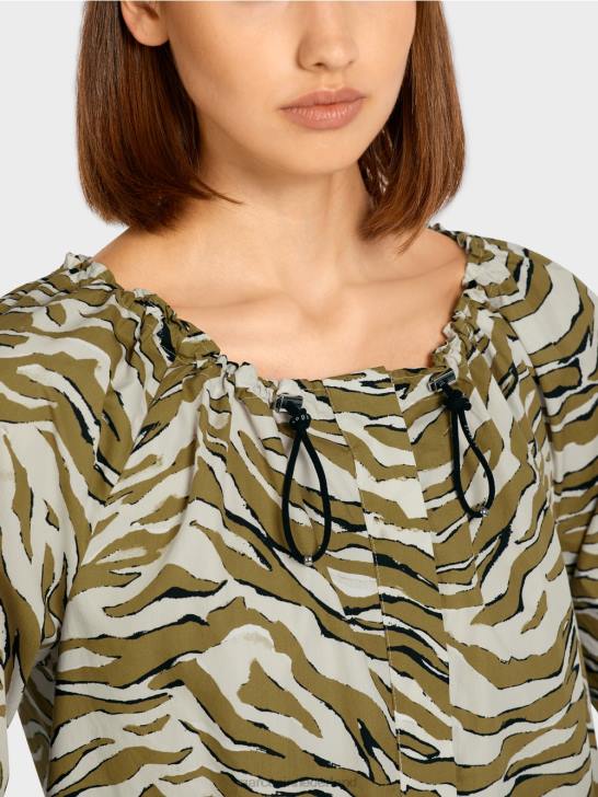 deze tuniekjurk heeft raglanmouwen en is gemakkelijk aan en uit te trekken. het design is strak - de gestileerde luipaardprint in een opvallende kleur zorgt voor een wow-effect. Op de split in de zijnaad en aan de binnenkant van de manchet zitten contrasterende patronen. dit kledingstuk is gemaakt van biologisch katoen en draagt het duurzaamheidslabel ‘rethink Together’.