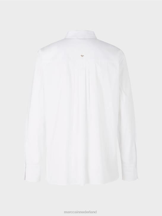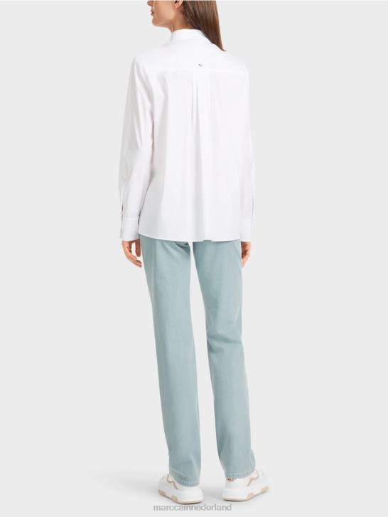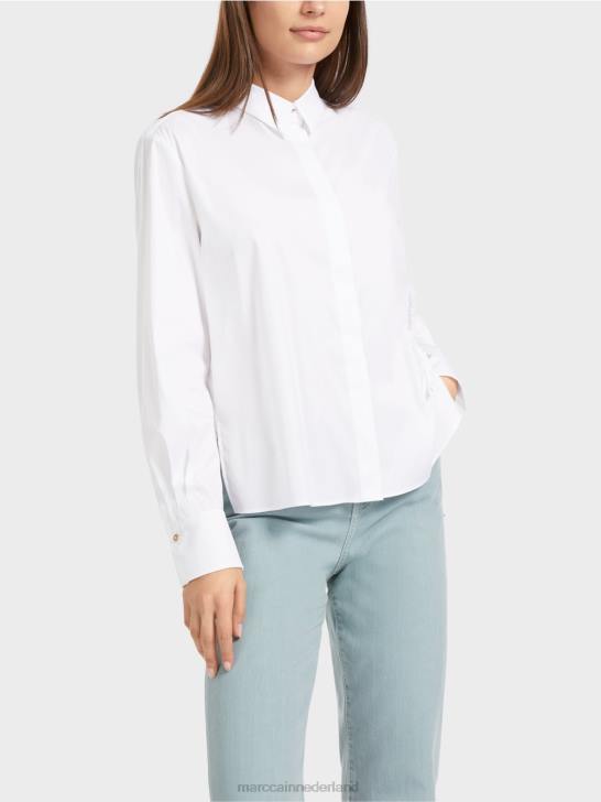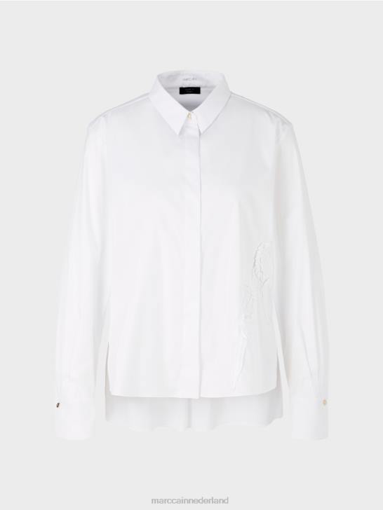 wijde overhemdblouse in een elastische materiaalmix met katoen. een gestileerde vogelapplicatie verfijnt deze blouse op een moderne manier. Klassieke details zijn de verborgen knoopsluiting en wijde mouwen met manchetten. Dankzij het verlengde rugpand kan de blouse gemakkelijk gestyled worden in de trendy laagjeslook.