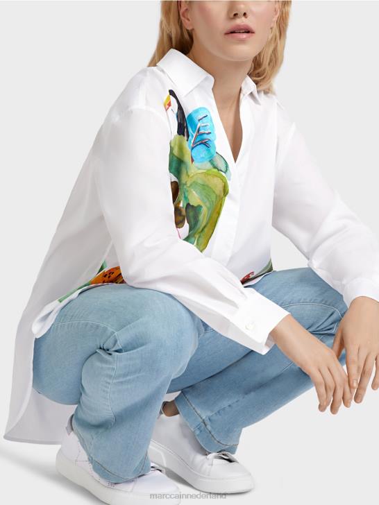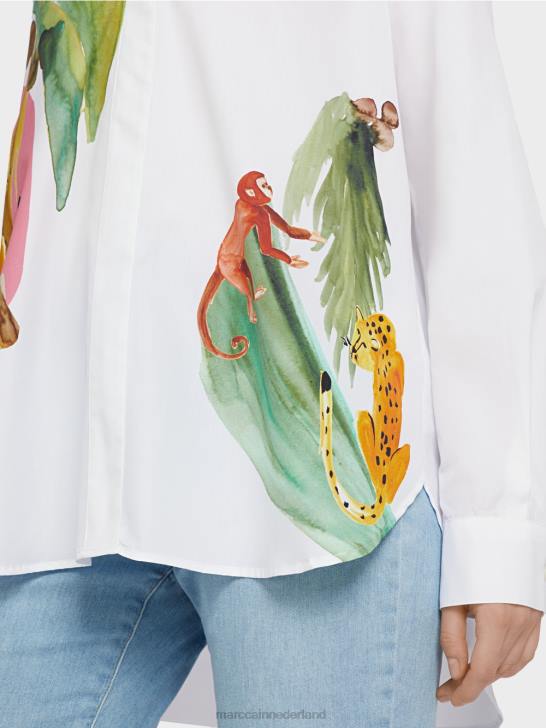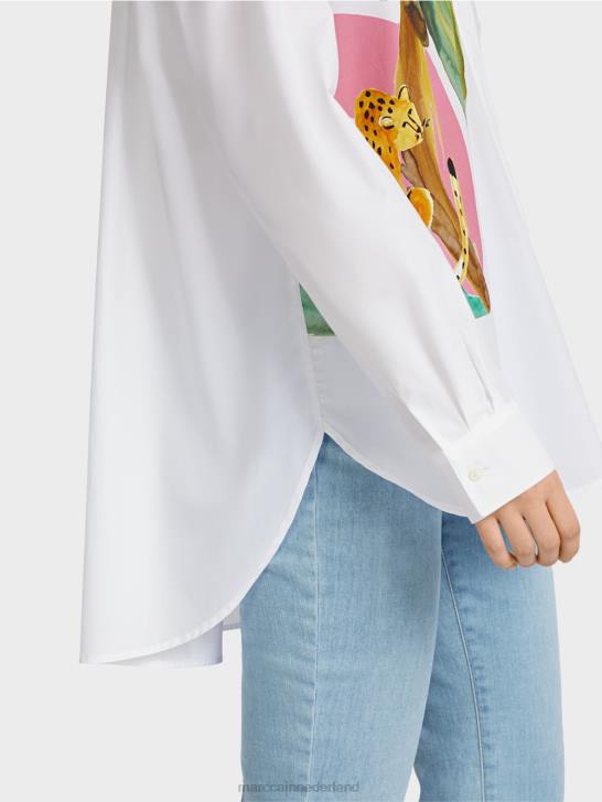 nonchalante blouse van 100% katoen. twee kleurrijke, onafhankelijk van elkaar geplaatste dierenprints zorgen ervoor dat deze blouse veel aandacht krijgt. Het heeft ook een klassieke snit in overhemdstijl met een kraag, manchetten aan de mouwen en een verborgen knoopsluiting. de v-hals brengt een moderne component met zich mee. de achterkant is langer en heeft een stolpplooi bij de pas voor meer breedte.