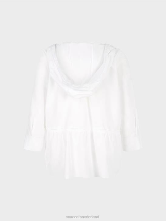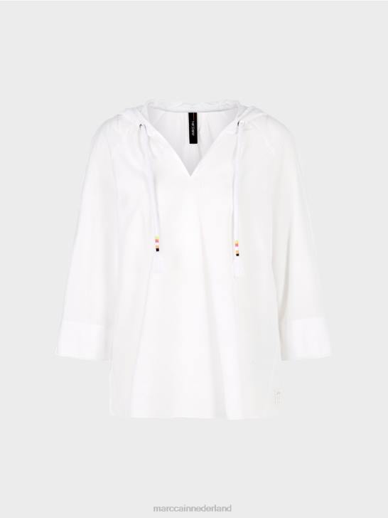 blouse van katoen met zijde. Het is niet alleen het hoogwaardige materiaal dat deze blouse tot een favoriet kledingstuk voor de zomer maakt. het biedt ook een indrukwekkend casual pasvorm. de voorkant heeft een v-hals, terwijl de achterkant een geplooide peplum heeft. De capuchon kan bovendien individueel worden aangepast met een koord. de raglanmouwen lopen uit in een brede tailleband.
