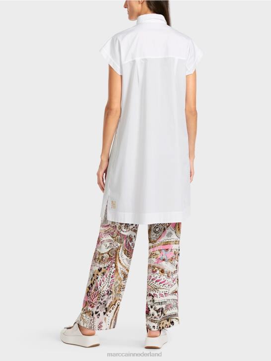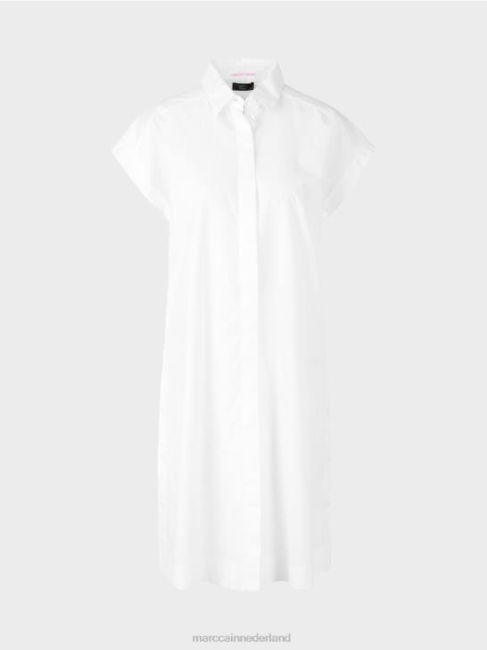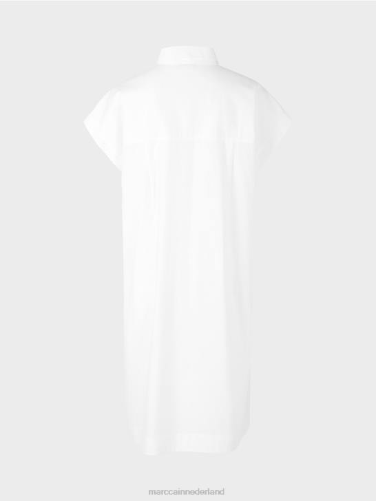 de lengte en de rechte snit creëren de unieke stijl van deze overhemdjurk. de verlaagde schouders, de verborgen knoopsluiting aan de voorkant en de knoopsluitingen in de zijnaden zijn de bepalende elementen van het geometrische ontwerp. het artikel is gemaakt van biologisch katoen en draagt het duurzaamheidslabel ‘rethink Together’.
