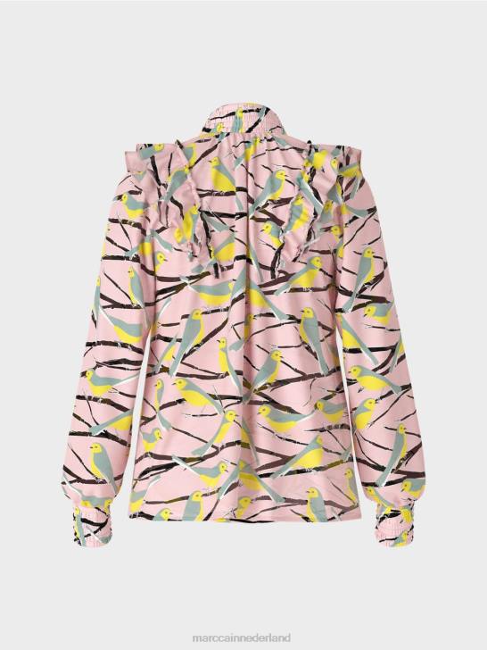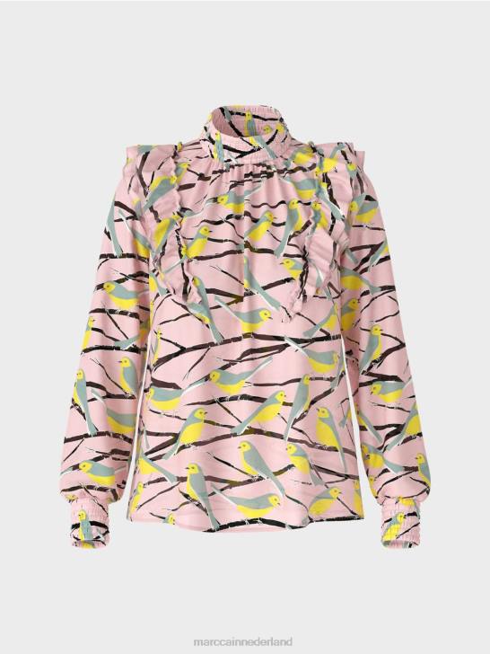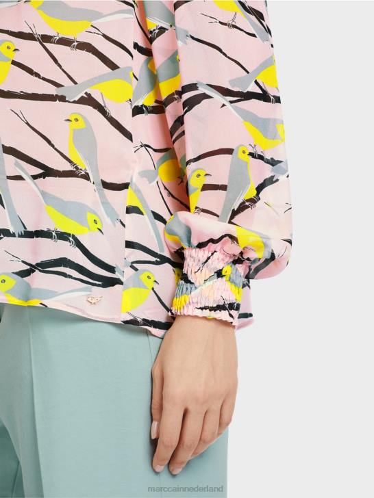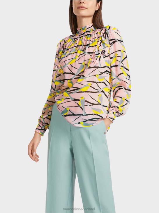 met zijn exotische vogeldessin is deze blouse een hoogtepunt in elke outfit. vooral omdat hij ook is voorzien van een gesmokte opstaande kraag en gesmokte mouwen. ruchedetails accentueren de speelse look. de top heeft een wijd silhouet en is gemaakt van comfortabel viscose.