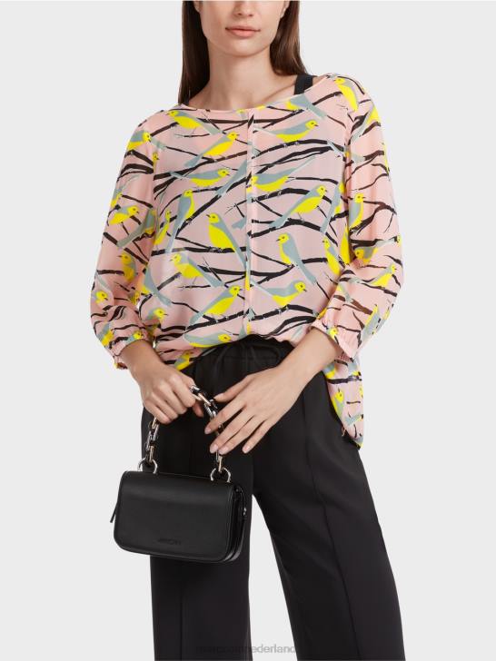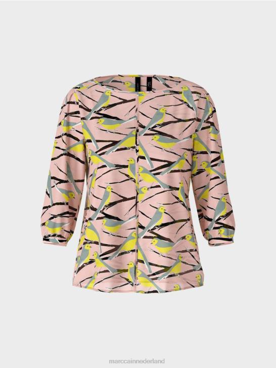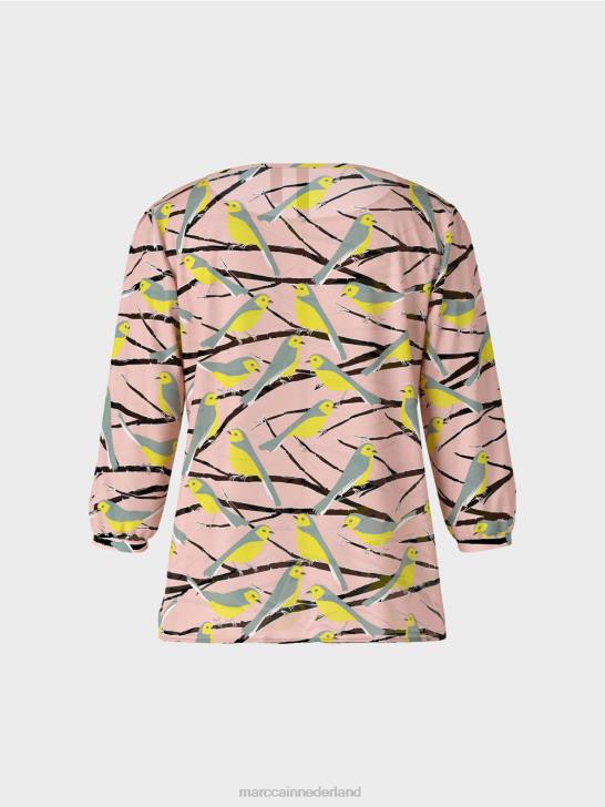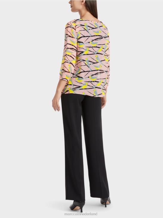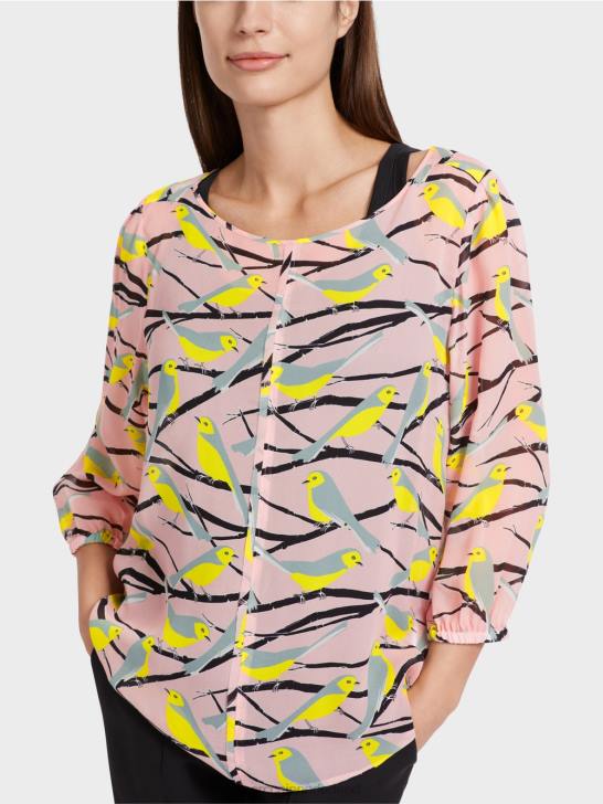 zacht vallende viscose blouse in casual snit, met middennaad. het speelse vogeldessin geeft deze blouse een bijzondere touch. de wijde mouwen zijn versierd met smalle manchetten. het ontwerp wordt aangevuld door een grote ronde hals.
