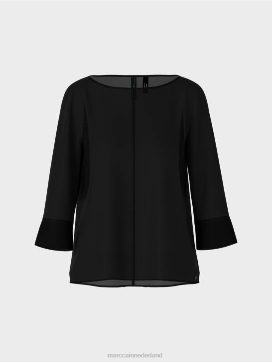 luchtige top in blousestijl: de stof is gemaakt van 60% gerecycled polyester en draagt de duurzaamheidslabel "samen heroverwegen". het materiaal is semi-transparant en licht gekreukeld. de ruches aan de mouwen en voornaad zorgen voor een stijlvolle look.