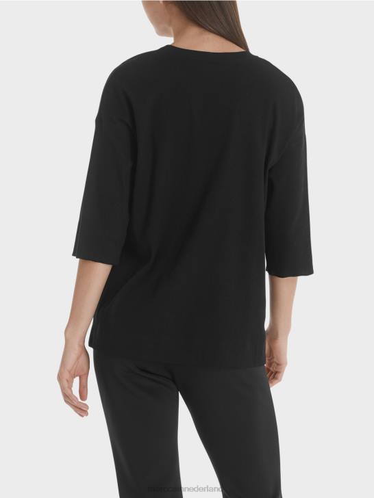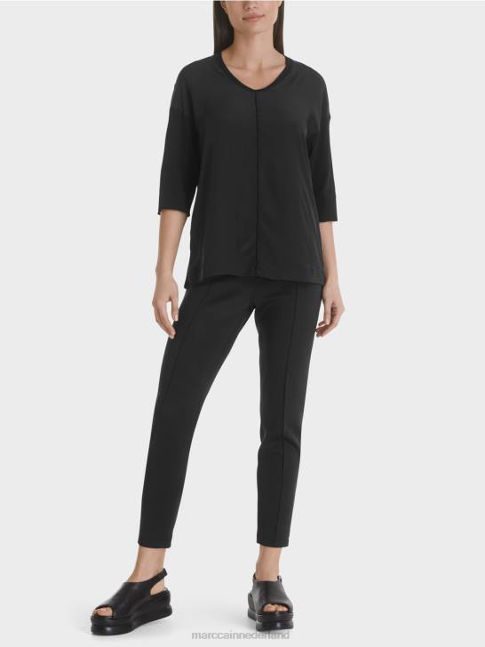 stijlvol blouseshirt met relaxed silhouet, casual overlappende schouders en halflange mouwen die gemakkelijk kunnen worden opgerold. Het blouseshirt presenteert zich met een spannende materiaalmix: de iets verlengde rug en mouwen zijn gemaakt van comfortabele katoenen ribjersey, terwijl de voorkant is gemaakt van zacht glanzende microvezelkwaliteit.