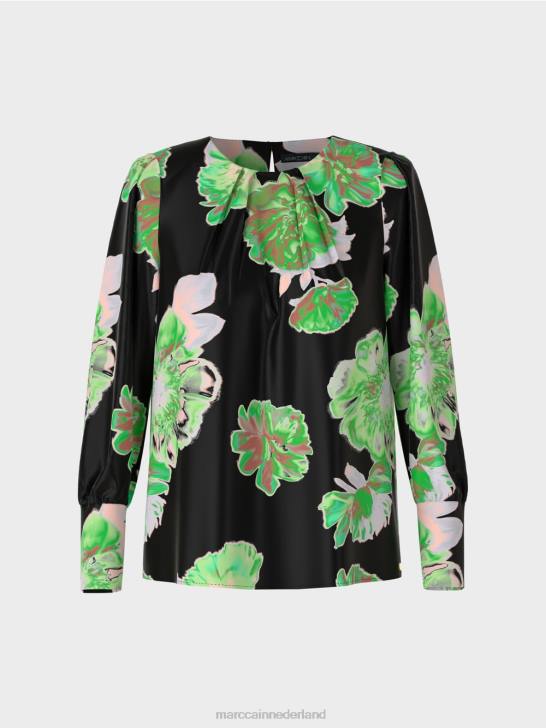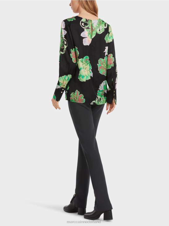 soepel vallende blouse van viscose. deze blouse presenteert zich vrouwelijk met een romantische bloemenprint. De snit heeft ook speelse details zoals een geplooide ronde halslijn met een delicate knoopsluiting bij de hals. bijpassende mouwen zijn aan de inzet voorzien van ruches en eindigen in een brede manchet met fijne metalen knoopjes. de rechte snit heeft een casual wijdte.
