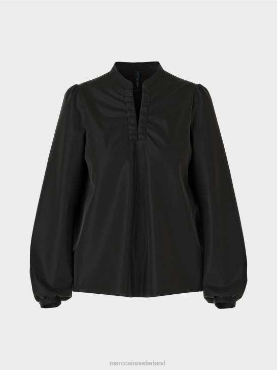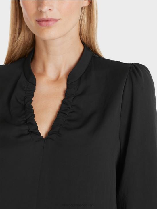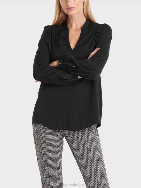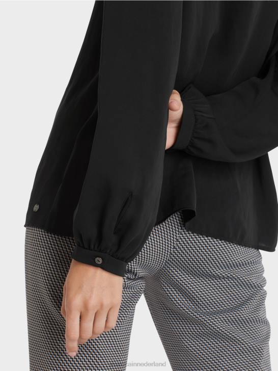relaxed gesneden blouse gemaakt van lichte en luchtige microvezelkwaliteit met lange mouwen. de blouse is versierd met mooie, vrouwelijke details, zoals: ruches op de schouders, ingetrokken elastiek met licht rimpeleffect bij de halslijn en manchetten met knopen.