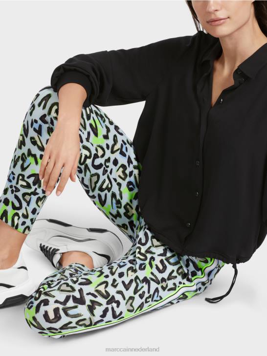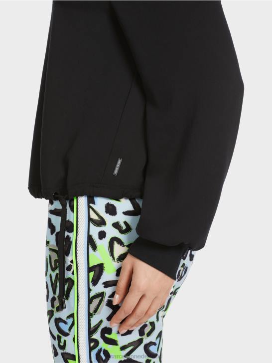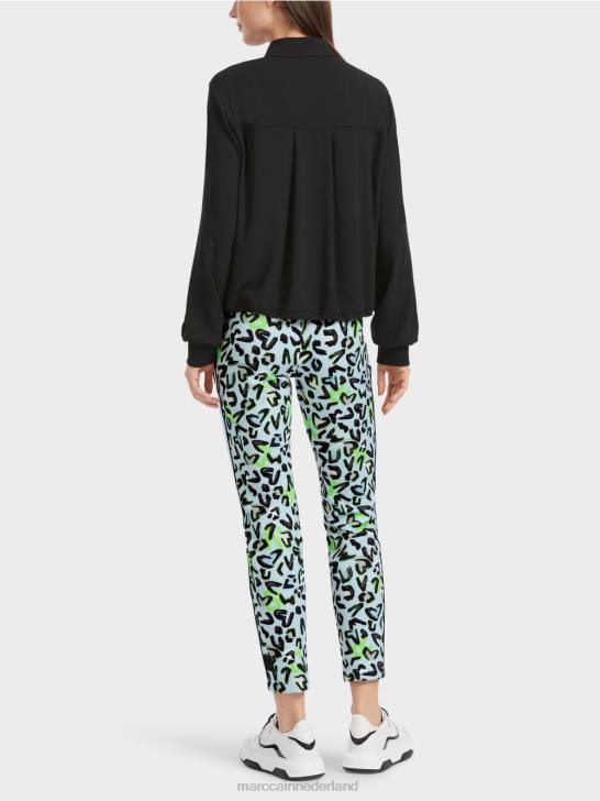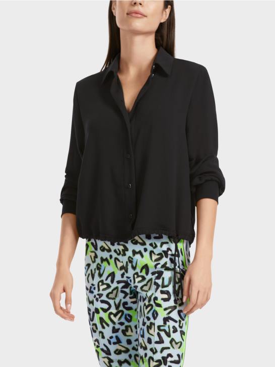 de blouse is gemaakt van zacht vallende stof. het ontwerp heeft zijn hoogtepunt in de zoom met trekkoord. dit maakt effectieve variaties mogelijk. de mouwen eindigen met gebreide manchetten. de achterkant is shirtachtig opgelost met schouderpas en plooi.