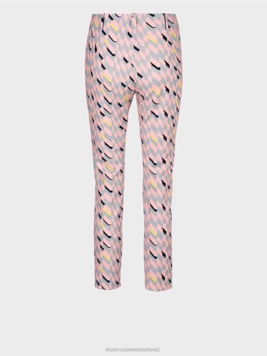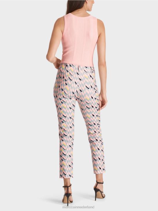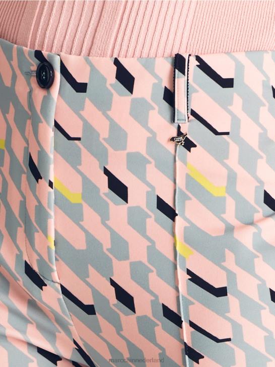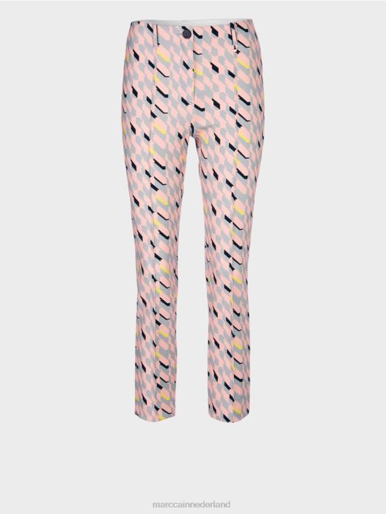 broek sydney gemaakt van stretchmateriaal met een unieke grafische print en individuele neonaccenten. deze broek combineert perfect comfort en stijl. de gestikte vouwen zorgen voor een elegante touch. Als klein hoogtepunt is er een schattig mini-vogelbedeltje aan bevestigd, wat voor een speels accent zorgt.