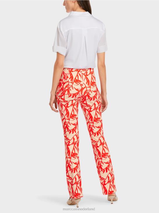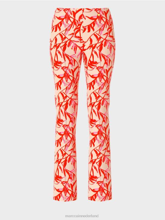 kleding helder bruin 464J702 broek met bloemenprint Marc Cain