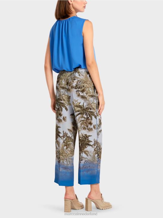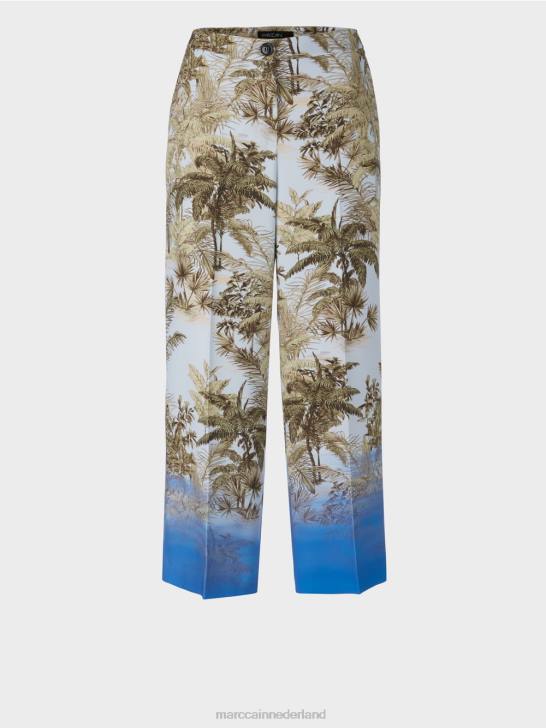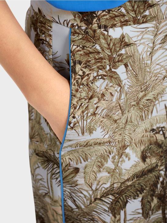 broek in losse, casual pasvorm met palmmotief. de stijl maakt een grote indruk met zijn coole ontwerp en kleurverloop aan de zoom. verdere kleuraccenten worden gecreëerd door de smalle bies aan de zakrand en zijnaad. de broek sluit met een rits en knoop.