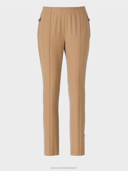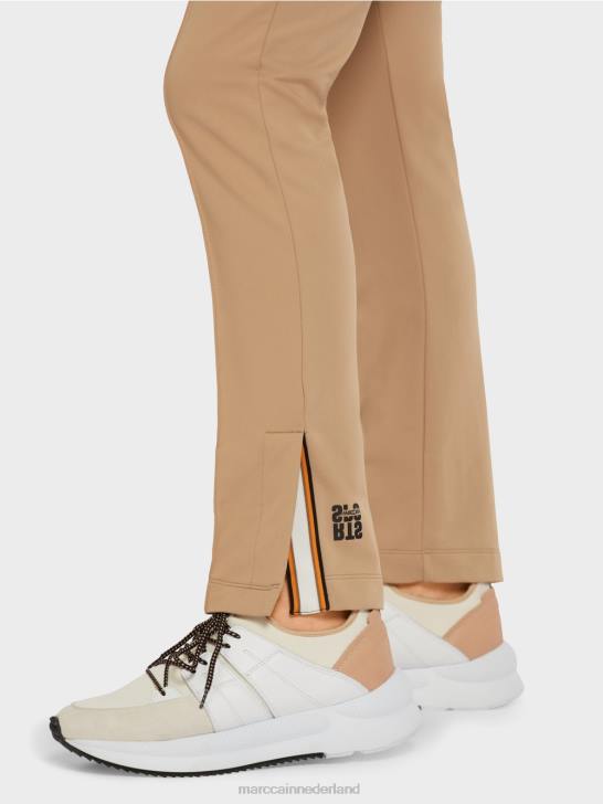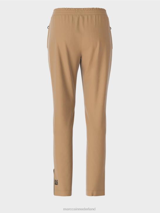 relaxte broek van katoen met elastaan. Het hoogtepunt van deze broek zijn de zijsplitten aan de zoom, geaccentueerd met een gekleurd geribd lint. dit versterkt de sportieve stijl. De afwerking van deze broek is voorzien van een doorgestikte geperste vouw en zijzakken met ritssluiting en O-ring. de elastische tailleband zorgt voor een comfortabele pasvorm.