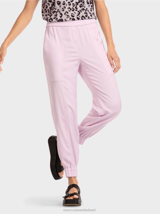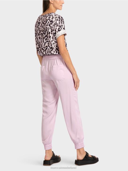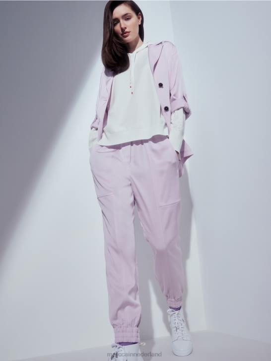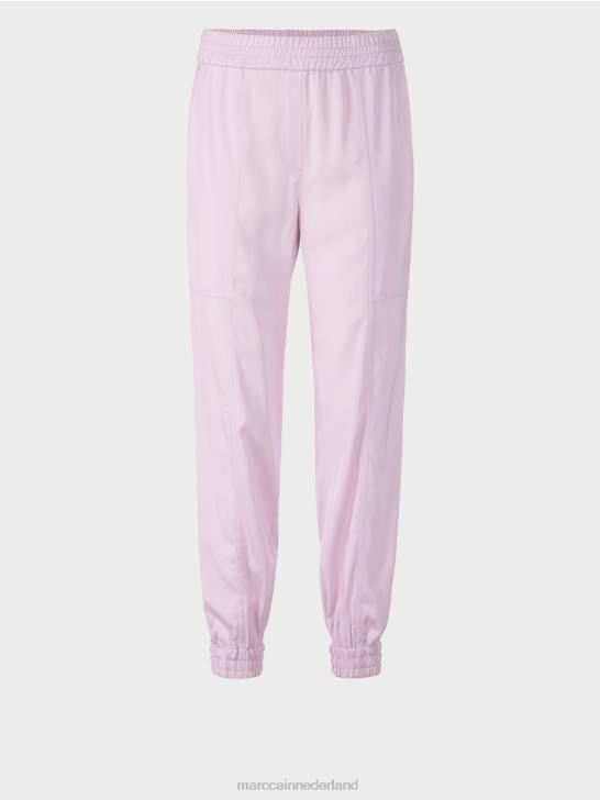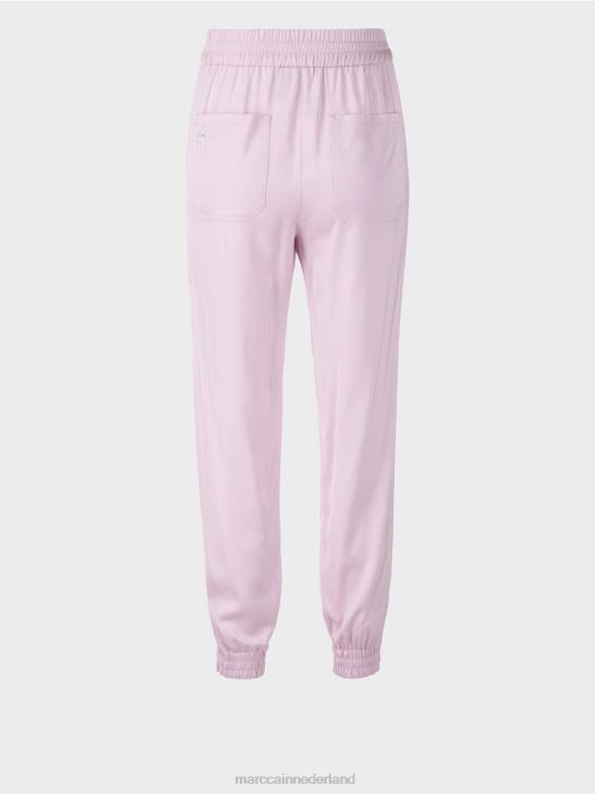 deze broek heeft een joggertailleband en zoom. de vier opgestikte zakken en de naad middenvoor zorgen voor een sportief tintje. de zacht vloeiende mix van viscose en elastaan creëert een figuuraccentuerend silhouet.