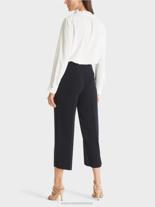 de wellington broek maakt indruk met een wijde pasvorm en een normale taillehoogte. gestikte vouwen accentueren de look. het item heeft steekzakken en sluit met een rits en knoop.