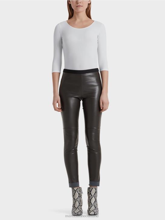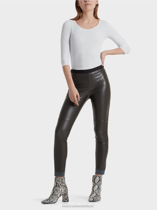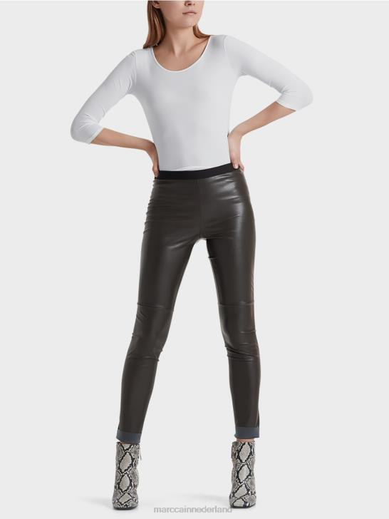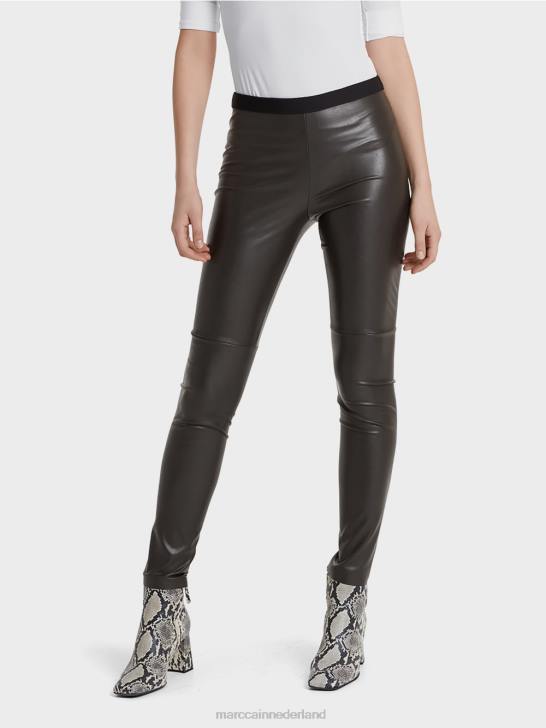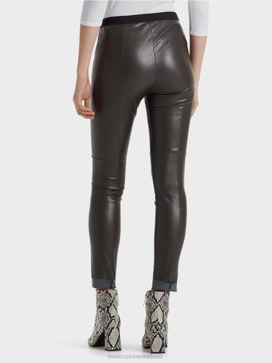 lichaamsvorm benadrukkende legging van synthetische vezels in leerlook, met stijlvolle offsetstiksels. De leggings zijn elastisch en bieden daardoor een comfortabel gevoel tijdens het dragen. de ingebouwde rubberen band zorgt bovendien voor een comfortabele pasvorm.