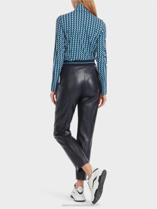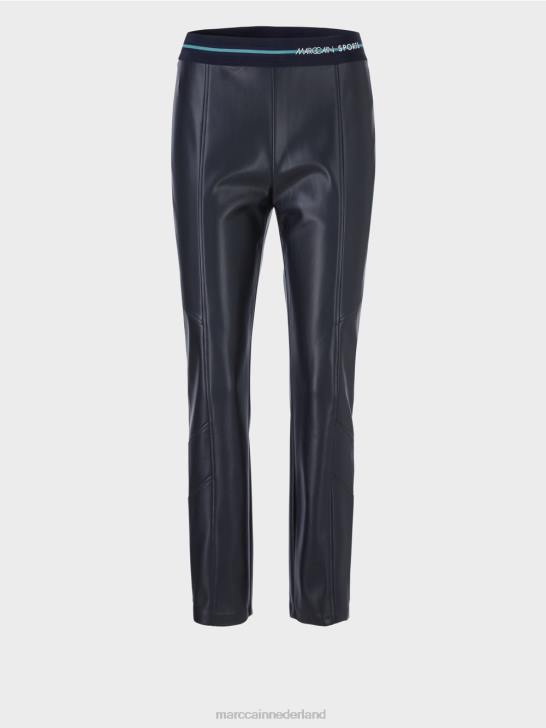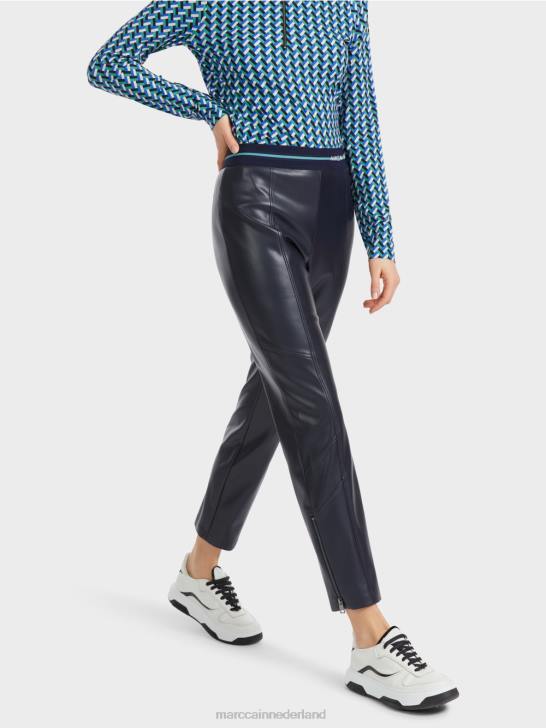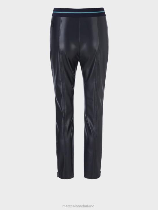 de sofia broek is dichtbij sluit mooi aan en zit comfortabel in de taille dankzij de elastische tailleband. de materialiteit van het leuke leer wordt benadrukt door decoratieve stiksels. Er zit een split in de zoom die kan worden vastgemaakt met een metalen ritssluiting. de broek heeft geen sluiting of zakken.