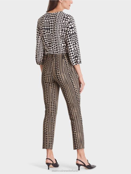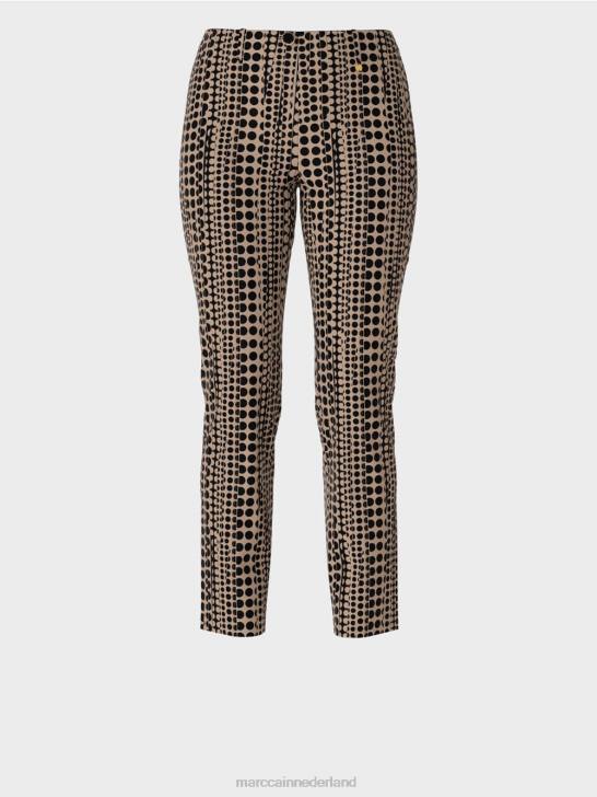 het bijzondere stippenpatroon maakt de model sydney een blikvanger. De broek is gemaakt van zachte stretch jersey en heeft een elastische tailleband aan de binnenkant. de sydney wordt gesloten met een ritssluiting en een decoratieve logoknoop. de kleine logohanger in licht goud en doorgestikte vouwen maken de stijl compleet.