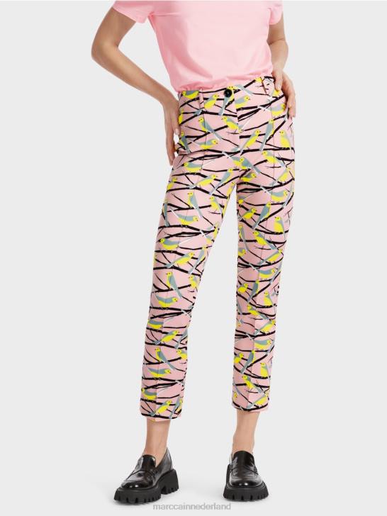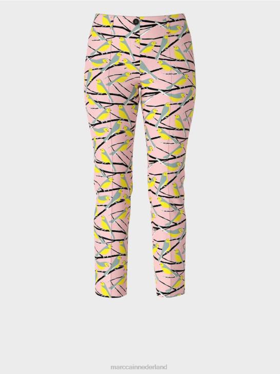 stretchbroek sydney gemaakt van zacht vloeiend materiaal. deze slim-fit broek overtuigt door zijn speelse vogeldessin. vastgemaakt met een rits en knoop. de tailleband heeft een normale hoogte en is voorzien van intern elastiek. gestikte vouwen maken het ontwerp compleet.