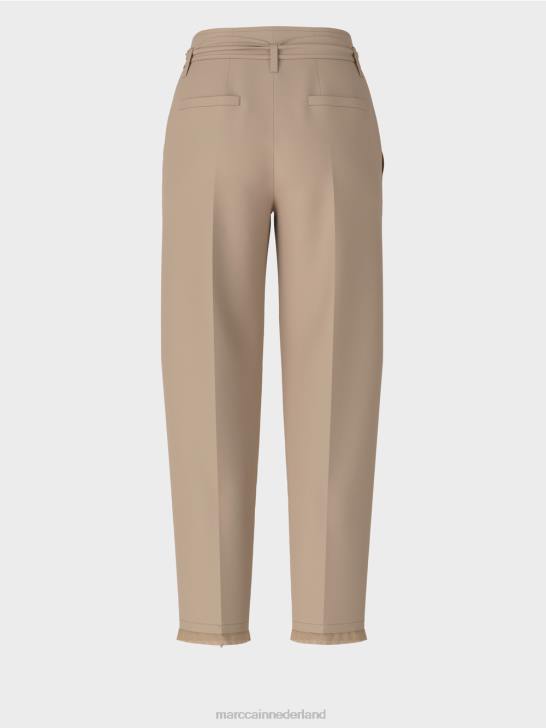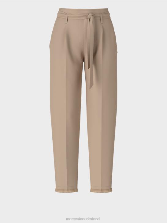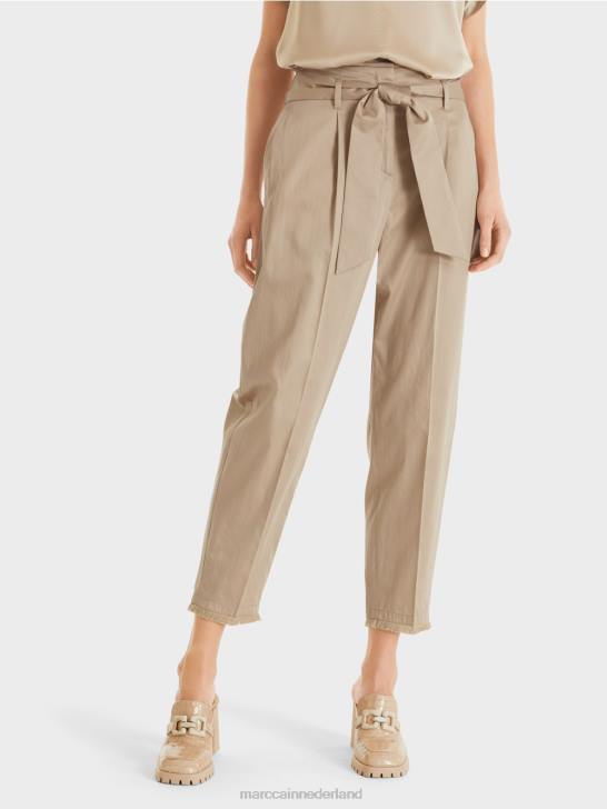 losse, casual pasvorm op de heup en smal aan de zoom en taille. de hoge tailleband van de broek lijkt dankzij de riem op een geknepen papieren zak, vandaar de term "paperbag-stijl". Verder heeft de broek een geperste vouw, steekzakken aan de voorkant en paspelzakken aan de achterkant.