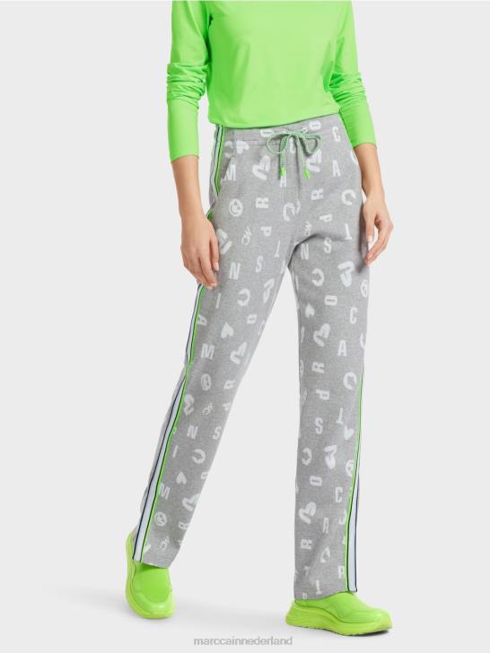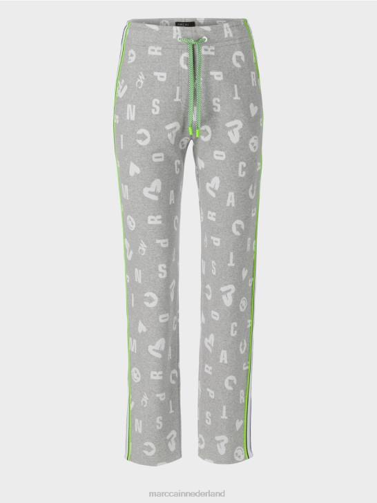 de broek roanne is gemaakt van fijn gebreid. het all-over gebreide patroon is voorzien van letters, harten en smileys. een cool contrast wordt geleverd door de kleurrijke omzoomde mesh-streep langs de zijnaad. functionele details zijn de zijzakken en de joggingbroekband met trekkoord.