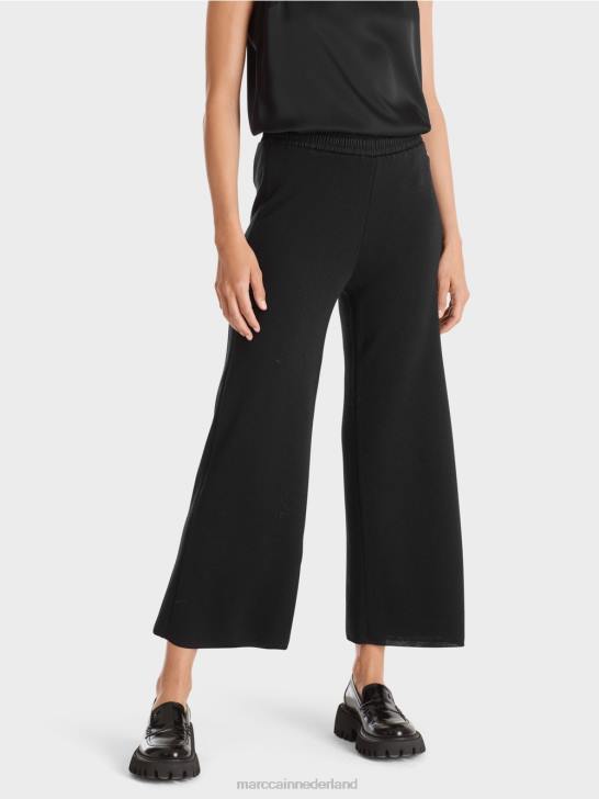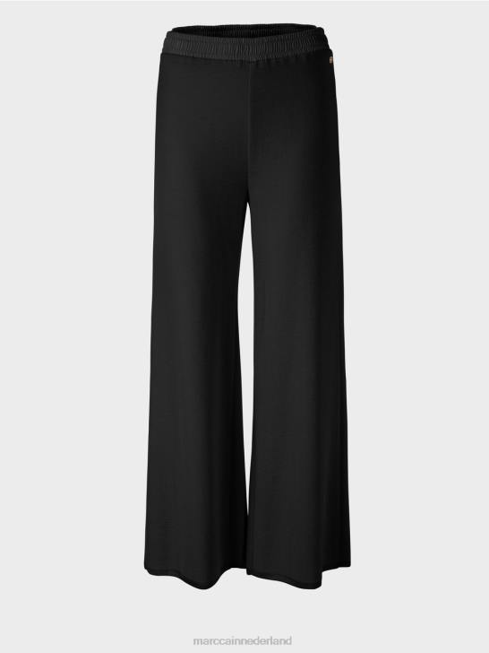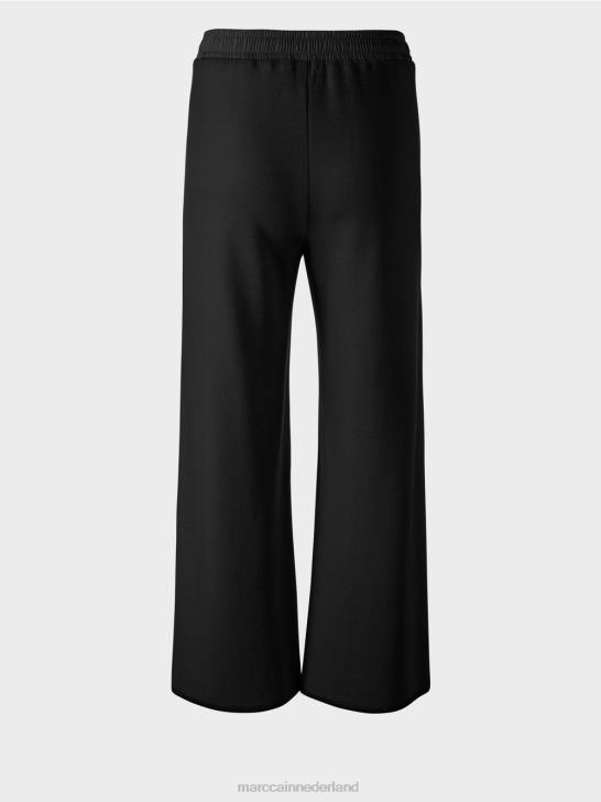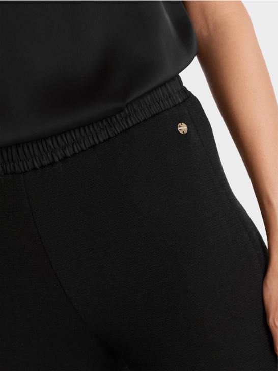 casual broek in een materiaalmix met wol. Deze gebreide broek overtuigt door zijn extra wijde pijpen en elastische tailleband. het stuk is "gebreid in Duitsland": het breien van de garens op ultramoderne breimachines en het afwerken van de stoffen gebeurt in Duitsland. de afzonderlijke onderdelen, zoals mouwen, voorpand enz., worden in Europese partnerbedrijven aan elkaar genaaid.