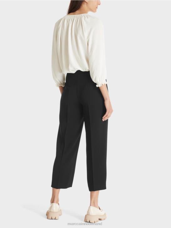 de wellington broek maakt indruk met een wijde pasvorm en een normale taillehoogte. gestikte vouwen accentueren de look. het item heeft steekzakken en sluit met een rits en knoop.