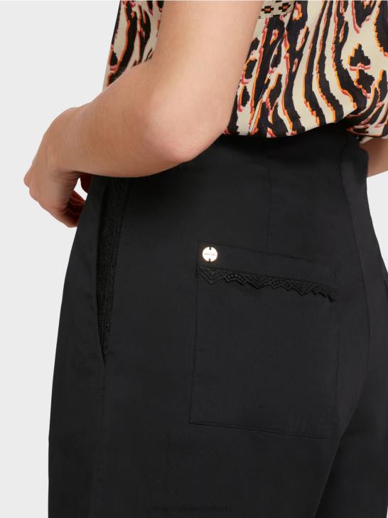 deze short is van puur katoen en is afgewerkt met een kanten rand aan de zoom. Op de opgestikte zakken aan de achterkant zit een smallere kanten rand. het model is ontworpen zonder tailleband en de taille wordt gevormd door doorgestikte tailleplooien. Ze worden gesloten met een ritssluiting in de naad aan de zijkant.