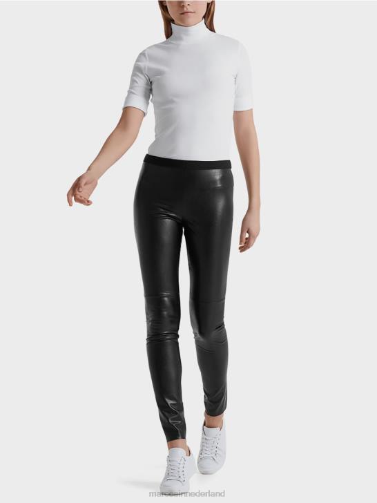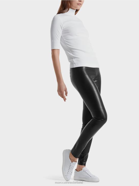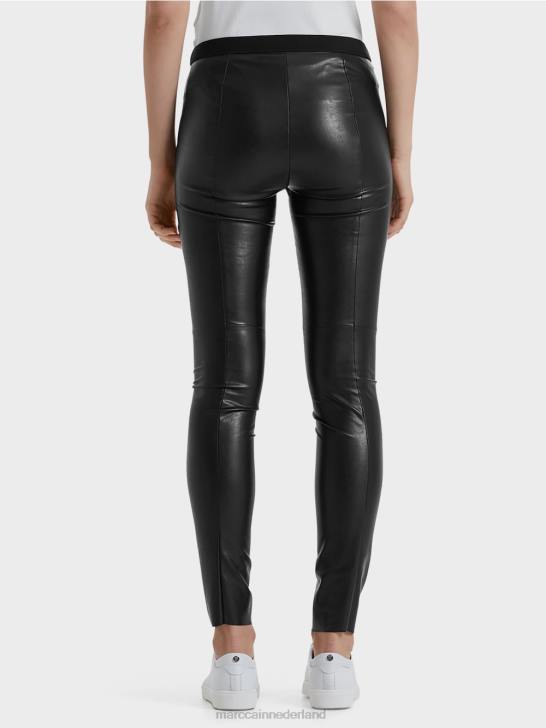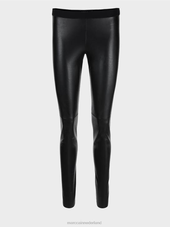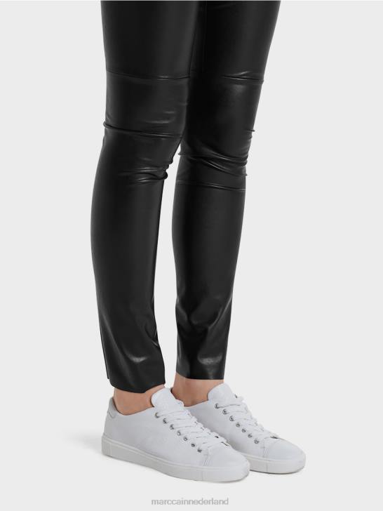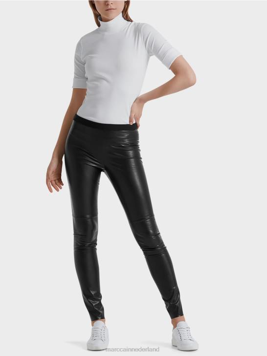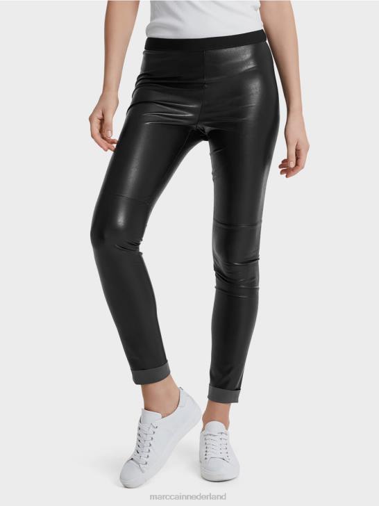 lichaamsvorm benadrukkende legging van synthetische vezels in leerlook, met stijlvolle offsetstiksels. De leggings zijn elastisch en bieden daardoor een comfortabel gevoel tijdens het dragen. de ingebouwde rubberen band zorgt bovendien voor een comfortabele pasvorm.