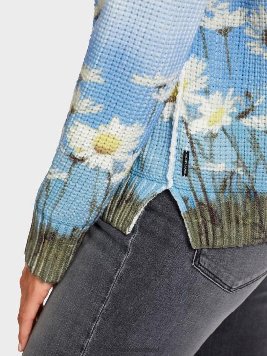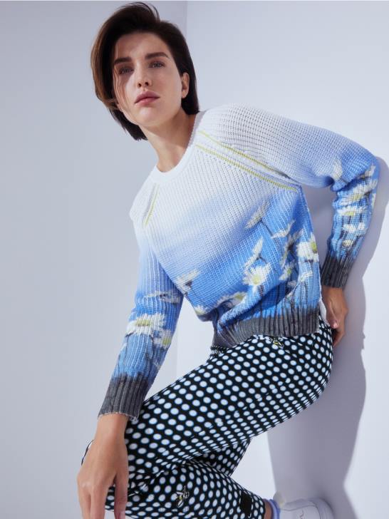 de trui valt op door zijn kleurrijke madeliefjesmotief op de grof gebreide stof. een mix van katoen, polyamide en acryl maakt het comfortabel lichtgewicht en zacht. de raglanmouwen worden geaccentueerd met een kleurcontrast en externe naadtoeslagen. het artikel wordt in ons bedrijf in Duitsland gebreid en afgewerkt. de verdere verwerking van de afzonderlijke stukken wordt uitgevoerd door onze partnerbedrijven in Europa. dit maakt de stijl "gebreid in Duitsland".