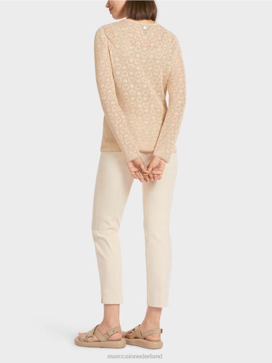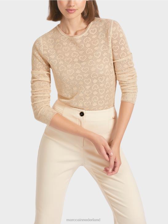 lichtgewicht trui in een mix van materialen met een hartvormig geperforeerd ontwerp. deze effen doorzichtige trui is gebreid en afgewerkt in onze fabriek in Duitsland. de verdere verwerking van de afzonderlijke stukken wordt uitgevoerd door onze partnerbedrijven in Europa. dit maakt het ontwerp met ronde hals "gebreid in Duitsland". het silhouet is nauwsluitend.