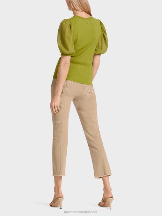 deze trui heeft een aansluitende pasvorm en wijde pofmouwen in 3 4-lengte. twee verschillende materialen vormen een opvallend contrast: de body is van een viscosemix, terwijl de mouwen van een katoenmix zijn. de trui draagt het duurzaamheidslabel ‘rethink Together’. Bovendien wordt het in Duitsland gebreid en afgewerkt met de nieuwste technologie, waardoor het "gebreid in Duitsland" is. de afzonderlijke stukken zoals de mouwen en voorkant enz. worden bij onze europese partnerbedrijven aan elkaar genaaid.